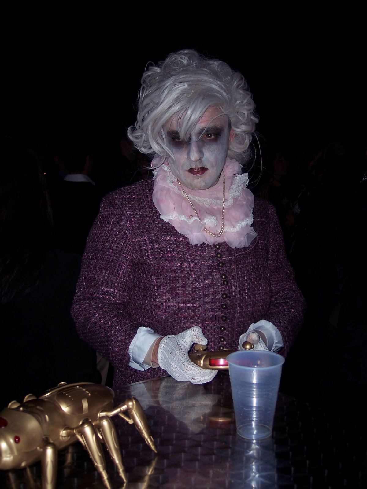 The first Friday in May, I hosted my first MeetIn event to attend a concert/cocktail party at the contemporary art museum. That was a unique experience. For the price of admission to the museum ($8), we could sip yummy cocktails from the cash bar, enjoy the museum (which we didn’t manage to do) and attend an hour-long concert in the performance hall. The museum holds the Vendredi Nocturnes every month and it’s so popular that they don’t announce the name of the band until the day of. We saw Bob, a dark, eclectic local band which included “go-go boys” (read: performance art) in their act. The band was excellent, though not exactly my thing. A picture of a “go-go boy” and a toy reminding me of a Replicator from Stargate SG-1 is below: