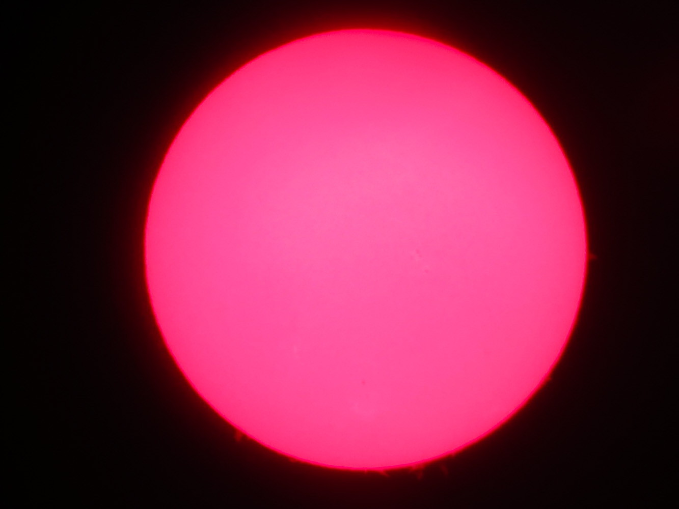 I was even allowed to put my camera up to the telescope and take a picture of the sun. You can see the solar flares on the edge of the sun. If you look closely, you can also see a sun spot (a slightly dark spot) in the lower half near the middle. That sun spot is about the size of the Earth.