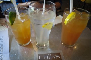 Stuffed with our delicious treats and two glasses of lemonade, we were happy to walk over to St. Laurent for the final place on our list. Laïka is part cafe, part bar, part hangout. When we sat down, we were surprised that lemonade was not on their menu. We showed the server a printout of the Nightlife.ca article. She verified that it was all true… and recommended we try the house iced tea as well. Half the group ordered lemonade and half ordered iced tea. While the lemonade was fresh, it was the least lemony of the three. Since we could barely taste the lemon, sweetness was not an issue. The iced tea was the better pick. Made with properly steeped tea, we could taste a hint of lemon and mint and it was sweetened just enough.