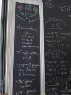 First on our list was the classic lemonade at La Petite Cuillère on St Denis, across from Square St. Louis. A quiet, eclectic cafe, they offered three different kinds of lemonade, along with tempting cakes and snacks. Deciding that there was only one fair way to compare, we all ordered the classic lemonade and grabbed a spot on the terrasse. Served in frosty mason jars, our drinks were tart, lemony and topped with frothy slush. While everyone appreciated the distinct lemon flavor, most of the group started looking around for sugar after their first sips.