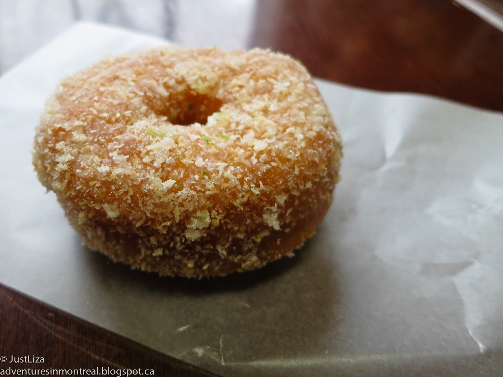 Still recovering from all the sweets at Christmas, I first wanted to try something on the lighter side. I chose the lime coconut donut, which was exactly right. The cake was light and not too sweet while the lime, coconut and sugar coating was nicely balanced.